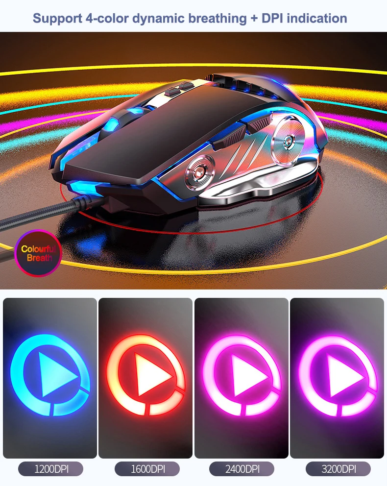 Pro Gaming Mouse 3200DPI Adjustable Silent Mouse Optical LED USB Wired Computer Mouse Notebook Game Mice for Gamer Home Office